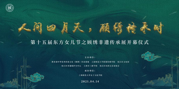 “第十五届东方女儿节之顾绣非遗传承展”于4月14日至16日在上海宝龙艺术中心三号厅展出。此次展览由教育部中华优秀传统文化(顾绣)传承基地、上海师范大学影视传媒学院、女子文化学院、松江非遗中心、上海市三新学校共同主办。