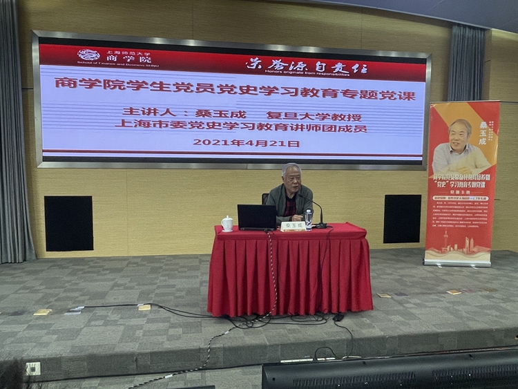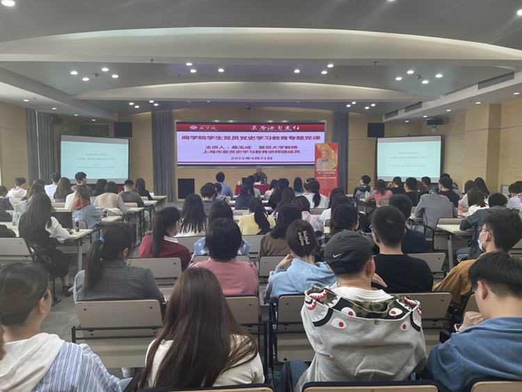 为全面贯彻落实中央关于党史学习教育各项要求和市委、市教卫工作党委以及校党委的统一部署和精神,学史明理、学史增信、学史崇德、学史力行,为学生党员讲好中国共产党的红色故事,4月21日下午,商学院党委邀请上海市委党史学习教育讲师团成员、复旦大学教授桑玉成教授开展了题为《历史镜像:那些党史人物给我们上了什么课》的党课辅导报告,商学院全体学生党员150余人参加了专题学习,报告会由商学院党委副书记、副院长周芸主持。
