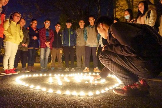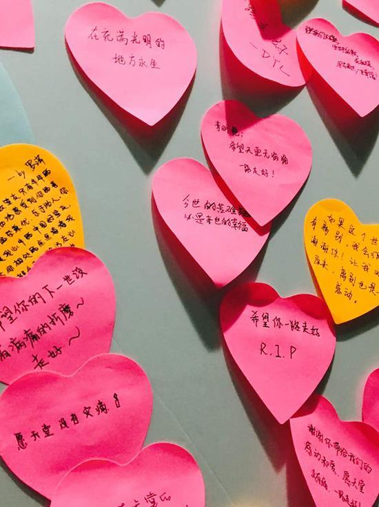 11月28日晚,上海师范大学学生自发组织了悼念活动。人们写下祈福卡片,为她燃起蜡烛,祝福她在天堂远离病痛。