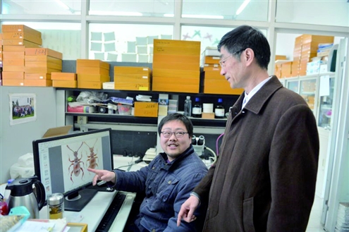 殷子为副教授与李利珍教授正在研究最新发现的物种。荀澄敏 摄