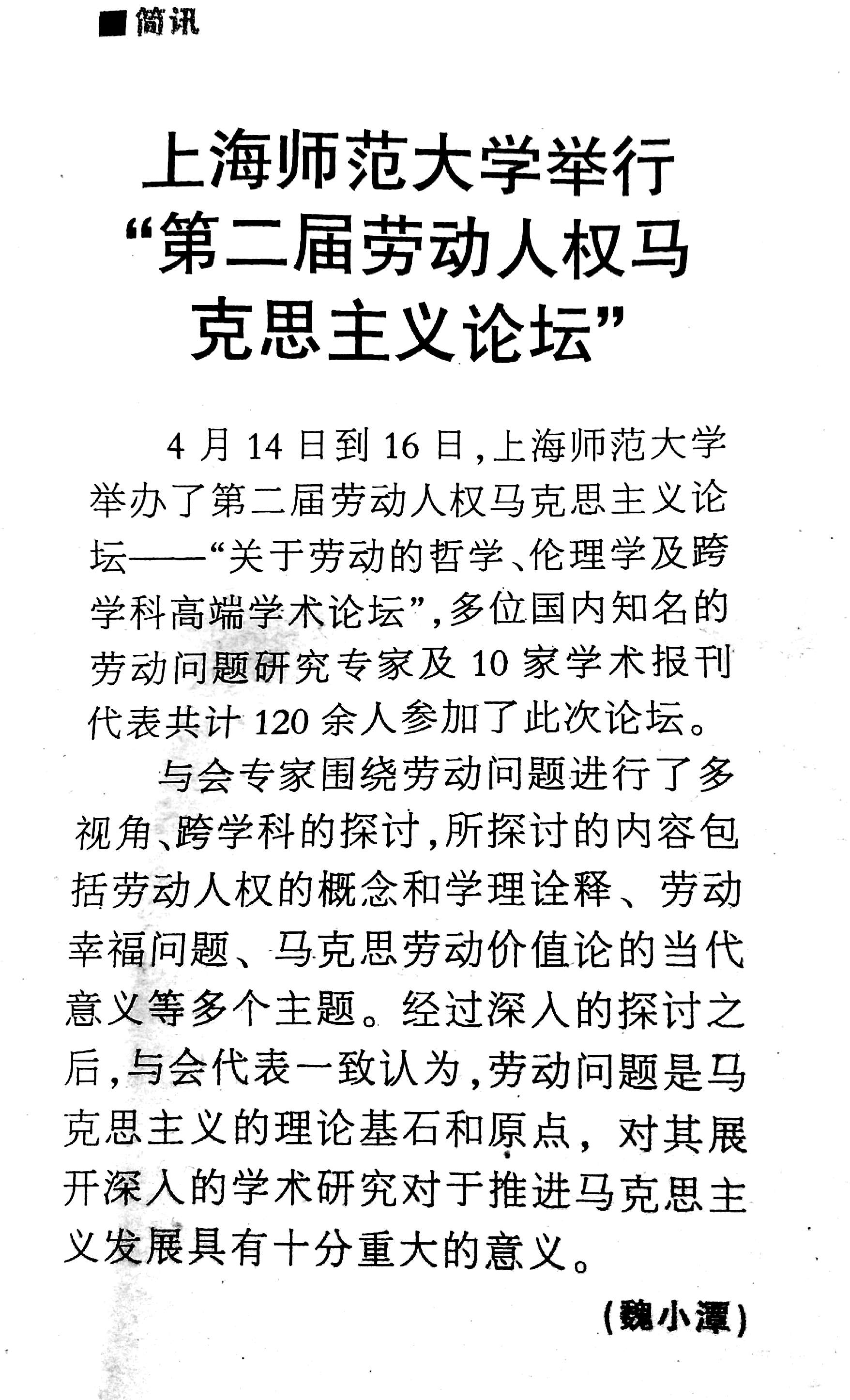 标题:上海师范大学举行“第二届劳动人权马克思主义论坛”