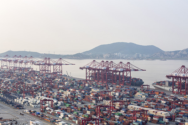 上海自贸区应争取在法治化、市场化和国际化制度及政策的可复制、可推广方面走在全国自贸区建设前列。图为2014年9月8日,作为上海自贸区一部分的洋山保税港区码头集装箱装卸区。 视觉中国 图