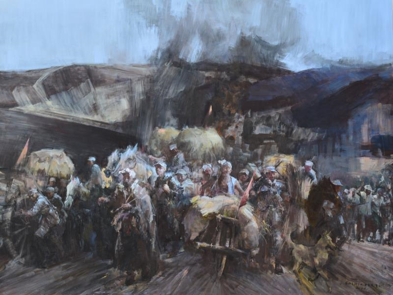 《车桥战役》作者:俞晓夫 曹刚 门青 孙玉宏 尺寸:300cm×400cm 材料:布面丙烯 年代:2017年