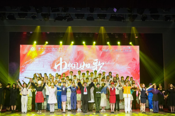 在党课排演过程中,学校充分发挥艺术教育特色,将丰富的艺术表现手法融入教学,将多元的艺术呈现与党课内容完美糅合,打造了艺术思政课的美育新范式。此次示范党课的创排,生动展现了上海师范大学音乐学院在人才培养上的“三台联动”实践成果,即“讲台”培养师范生技能、“舞台”展示专业学习成果、“写字台”体现科研实践能力。师生同台打造从台前到幕后的全方位“沉浸式”思政课程。舞台上的歌舞诗剧由教师党员和学生党员牵头打造,而幕后的志愿服务和保障团队也主要由学生党员和入党积极分子组成,舞台小课堂被充分融入思政大课堂。