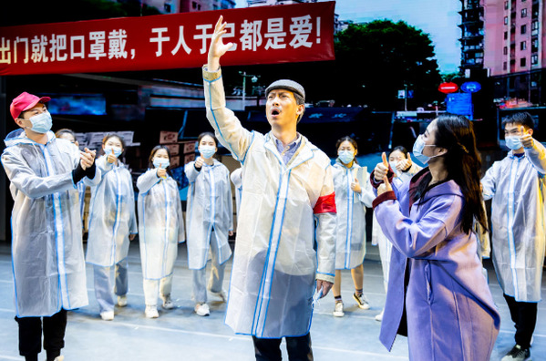 一层纱幕之下,江西苏区杜鹃坡外共产党员被敌人血腥屠杀,仿佛正在眼前发生,凸显出史诗般的伟大革命精神;二层纱幕升降之间,女主角何晓莲寒假疫情期间除夕夜担忧害怕,网上排演民族歌剧,社区参加志愿服务,回到校园继续排演,在毕业典礼上公演民族歌剧……光电“5G”多媒体技术融为一体的三维舞台视觉效果美轮美奂,上海师大承继20年复排民族歌剧《党的女儿》传统,首度倾力全新打造的原创校园歌舞剧《2020好儿女》今天在上海师大霞棐剧院盛大公演。