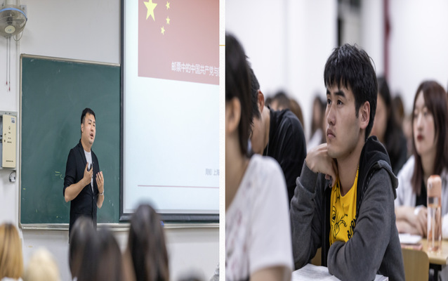 5月20日,影视传媒学院“恰是百年 风华正茂”党史系列讲座第四讲、由周韧教授主讲的“百年方寸 邮票中的中国共产党与新中国形象传播”党课讲座在奉贤校区五教学楼A座313教室举行。讲座延续了“专业特色与党史教育相结合”的理念,在学院师生中引起了热烈反响。讲座由影视传媒学院党委副书记、副院长戴宁宁老师主持。学院辅导员以及奉贤校区学生党员、发展对象和积极分子参加。