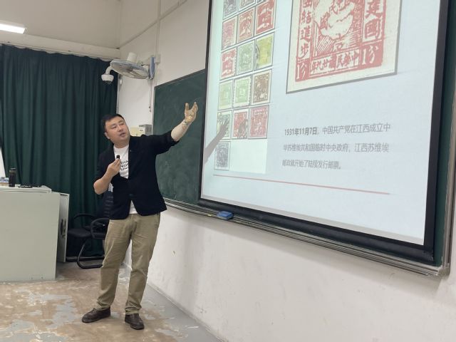 讲座开场,周韧教授就对主题进行了解读:“在小小的一枚邮票上,能够窥见中国共产党百年历史与新中国的复兴史。”周教授以翔实的史料为基础,将邮票与党史、中国近代史紧密结合,用丰富的邮票符号资料和深刻的个人感悟向师生们传达了我们党和国家一百年浓缩的革命和复兴历史。