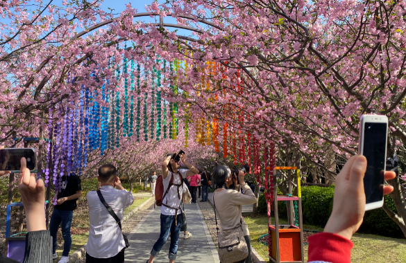 4月的人民公园,海棠盛放。上海大学上海美术学院的学生们带来了传统岩彩技艺,邀请市民游客一起参与大型艺术装置的创作。创新中华传统文化的传播方式,公园正成为大学美育的新课堂。