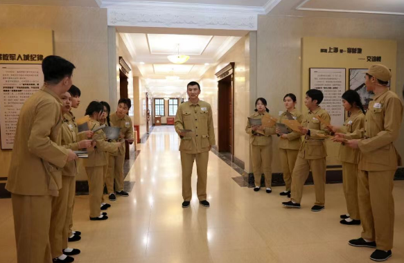 今年4月至5月间,“苏河明珠”实景思政课陆续向大众开放。1949年5月26日,华政长宁校区交谊楼成为解放军战士进驻上海的第一宿营地。华政百余名学生边演边讲,在历史建筑间移步换景,其中有一幕重温的正是这一上海解放的历史片段。