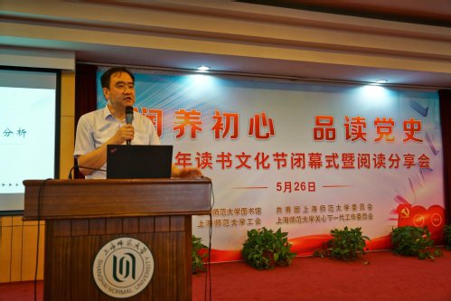 5月26日下午,奉贤校区虽大雨滂沱,冷风来袭,图书馆九楼会议中心却内暖意融融,知性温馨。“润养初心 品读党史”2021年校园读书文化节闭幕式暨阅读分享会在此举行。奉贤校区管委会、图书馆、关工委、团委、工会相关领导和人员以及100余名同学参加活动。