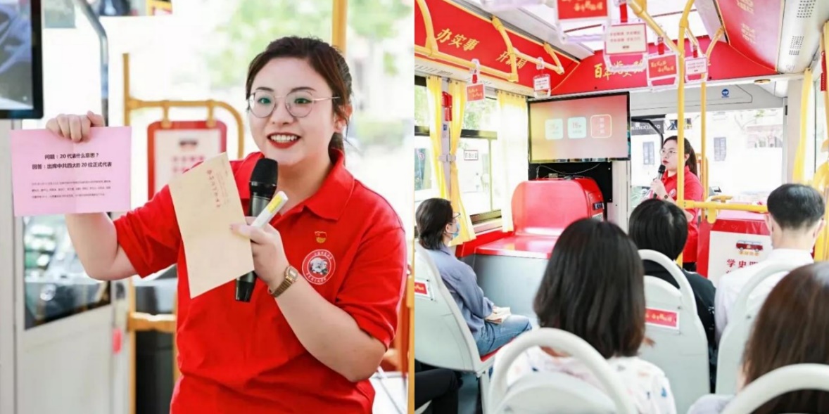 红色基因深深融入上海的血脉之中,为了让红色资源在城市更新中更加历久弥新,确保革命传统薪火相传,毕业生学生党员参与“百年党史路奋斗新征程”党史学习教育巴士课堂集体备课活动。成员们跟随红色“党史巴士”穿越历史的沧桑巨变,追寻中国共产党领导上海的足迹,体会中国共产党的百年艰辛与辉煌。“党史巴士”开启的沉浸式党课教学,以新颖的形式、生动的内容实现了车内讲解与车外景观的完美结合,让毕业生党员切实体悟到中国共产党领导中国人民在革命、建设、改革、复兴的伟大征程中闪耀着的坚定信念。毕业生党员李佳作为志愿讲解员用100分钟带领社会群众回顾了中国共产党历经坎坷、苦难辉煌的百年奋斗史,完美地为人们呈现了一堂生动精彩的党课。