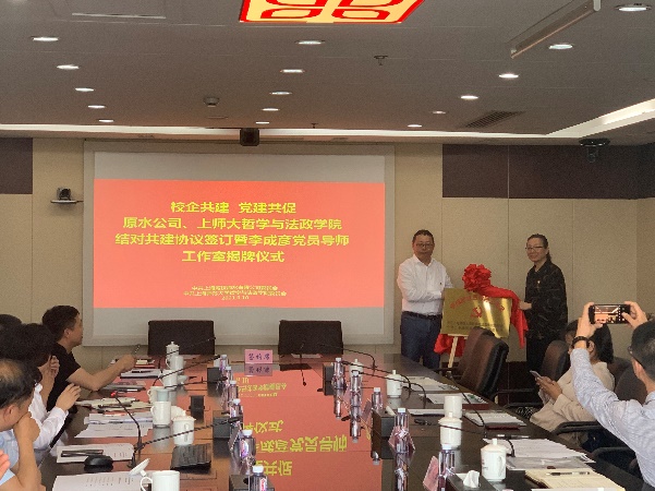 为更好体现高等教育“立德树人”育人体系与时代价值,形成“资源共享、优势互补、人才共育”的良好氛围, 6月10日下午,我校哲法学院与上海城投原水公司举行了结对共建暨李成彦党员导师工作室挂牌仪式。本次仪式由上海城投原水公司党委副书记、工会主席项佳寅主持,哲学与法政学院党委书记贺朝霞,副院长、副书记姚秋磊,人力资源管理系主任李成彦,原水公司党委书记、董事长王海亮,纪委书记秦康德,党委委员、副总经理王怀军,人力资源部经理华良等出席。