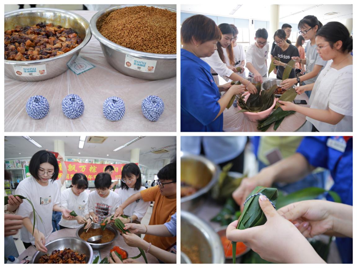 五月五,是端阳,吃粽子,挂香囊。为弘扬传统文化,同时让在校学生感受到端午节的温馨氛围,校学生生活园区管理中心联合生乐、科瑞两校区物业公司于6月10日分别在两校区的紫藤苑和教工餐厅举办了包粽子活动。两校区共百余名教职工和学生参与其中,提前共度端午佳节。