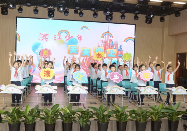 平凉路第三小学教育集团学生表演课桌舞《我们是滨江好少年》