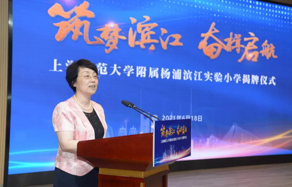 今天(6月18日)下午,上海市杨浦区委区政府和上海师范大学展开合作共建的上海师范大学附属杨浦滨江实验小学揭牌,人民教育家于漪发来寄语并亲自题写校名。