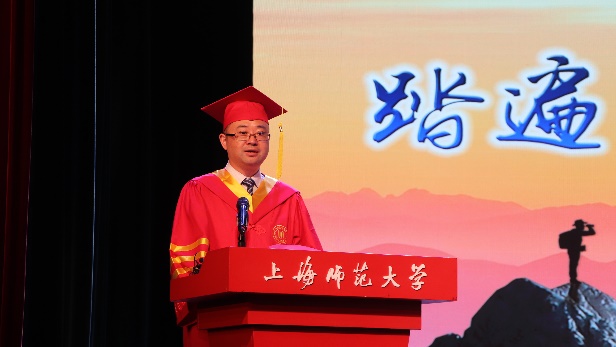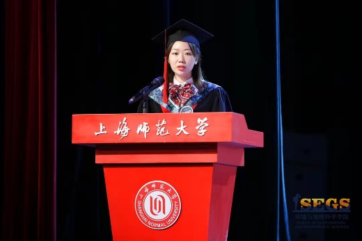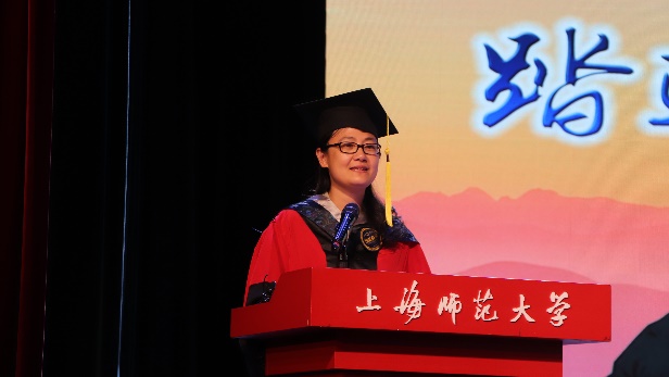 教师代表邵琳回忆了与师大学子的点点滴滴,衷心地希望毕业生们不仅要带走“把论文写在祖国大地上”的豪情壮志,还要热爱工作,坚持自己的梦想。最后,邵琳老师祝愿每一位毕业学子在新的时代中直挂云帆,乘风破浪。