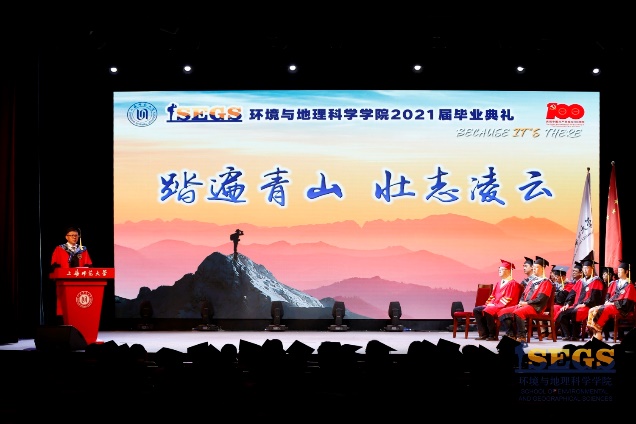 6月21日下午,环境与地理科学学院2021届毕业典礼暨学位授予仪式在徐汇校区东部音乐厅举行。校党委常委、副校长张峥嵘,院党委书记徐丰,院长高峻,院学位委员、院学术委员会成员、教师代表、家长代表及2021届毕业生相聚徐汇校园、共忆求学点滴。典礼由院党委副书记何佳主持。