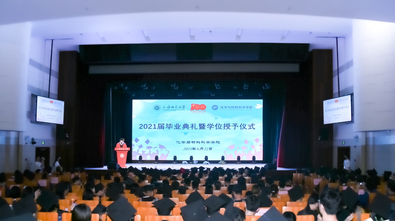 建党百年初心不改,化材学子扬帆起航。6月22日上午9:30,化学与材料科学学院2021届毕业典礼暨学位授予仪式在徐汇校区东部音乐厅举行。校党委副书记、副校长葛卫华,发展规划处处长、高等教育研究所所长杨海峰教授,人事处副处长张昉,学院领导,学术、学位委员会成员,教师代表及全体辅导员出席典礼。化材学院2021届全体本科及研究生毕业生参加此次庆典。化学与材料科学学院副书记、副院长张皓月老师主持典礼。