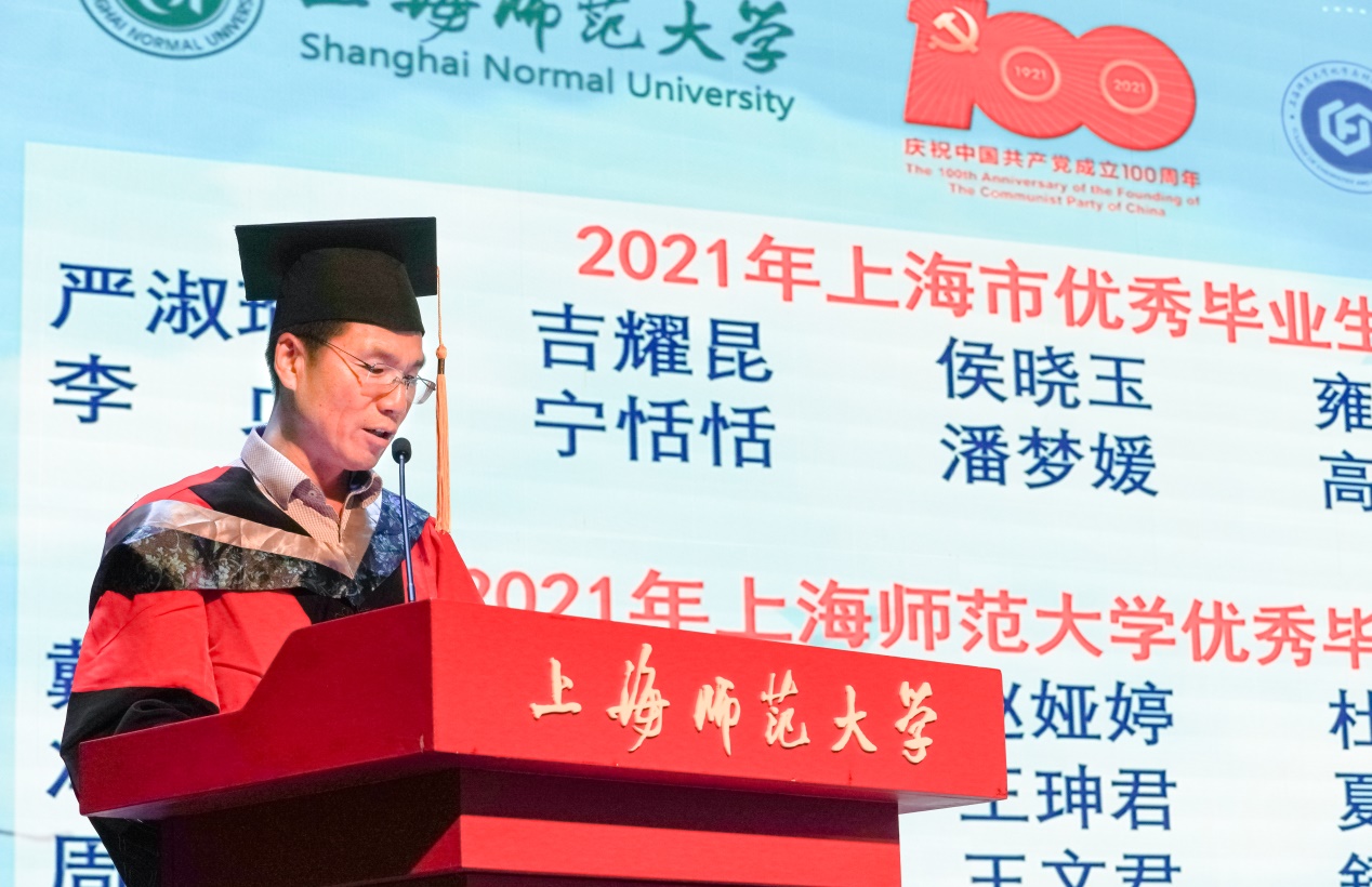 2021届上海市优秀毕业生翟田莉同学代表研究生毕业生发言。翟田莉历数了研究生三年中的点滴,对老师和同学表达了感谢之情,希望大家都能够积极向上,不忘初心,坚守信仰,并以习近平总书记寄语青年的话与同学们共勉,走出校门后,将努力为实现中华民族伟大复兴的中国梦贡献自己的青春力量!