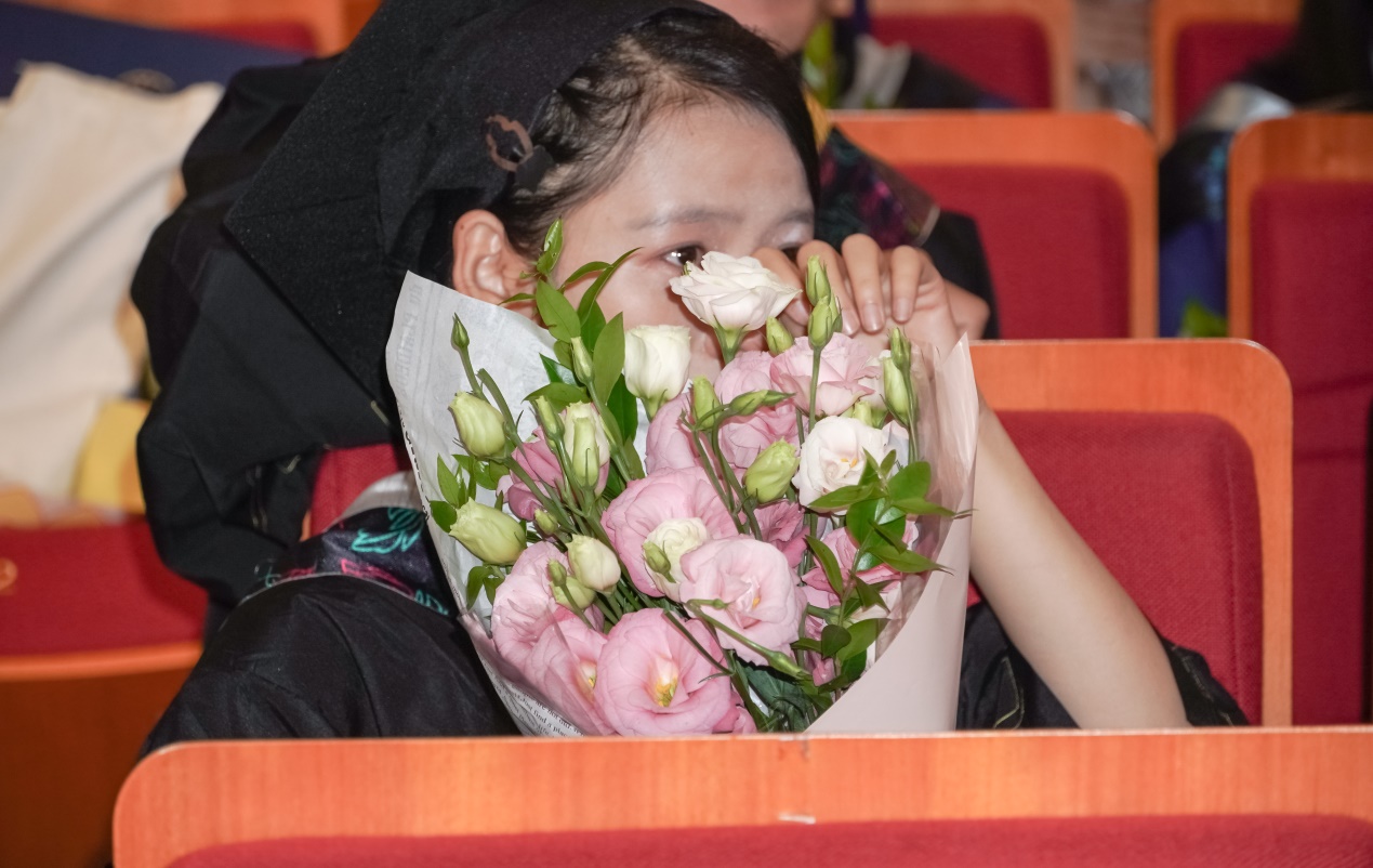 虽然家长无法入校观礼,但他们为毕业生们准备了一份暖心的祝福视频,父母亲切的呼唤、殷切的期盼,令现场的同学们潸然泪下。感恩仪式上,毕业生代表为老师们献上鲜花,感谢老师的谆谆教诲。全体毕业生向老师们深鞠一躬,表达心中感恩之情;毕业生们互相拥抱,再次感受浓浓的友情和对彼此的祝福。