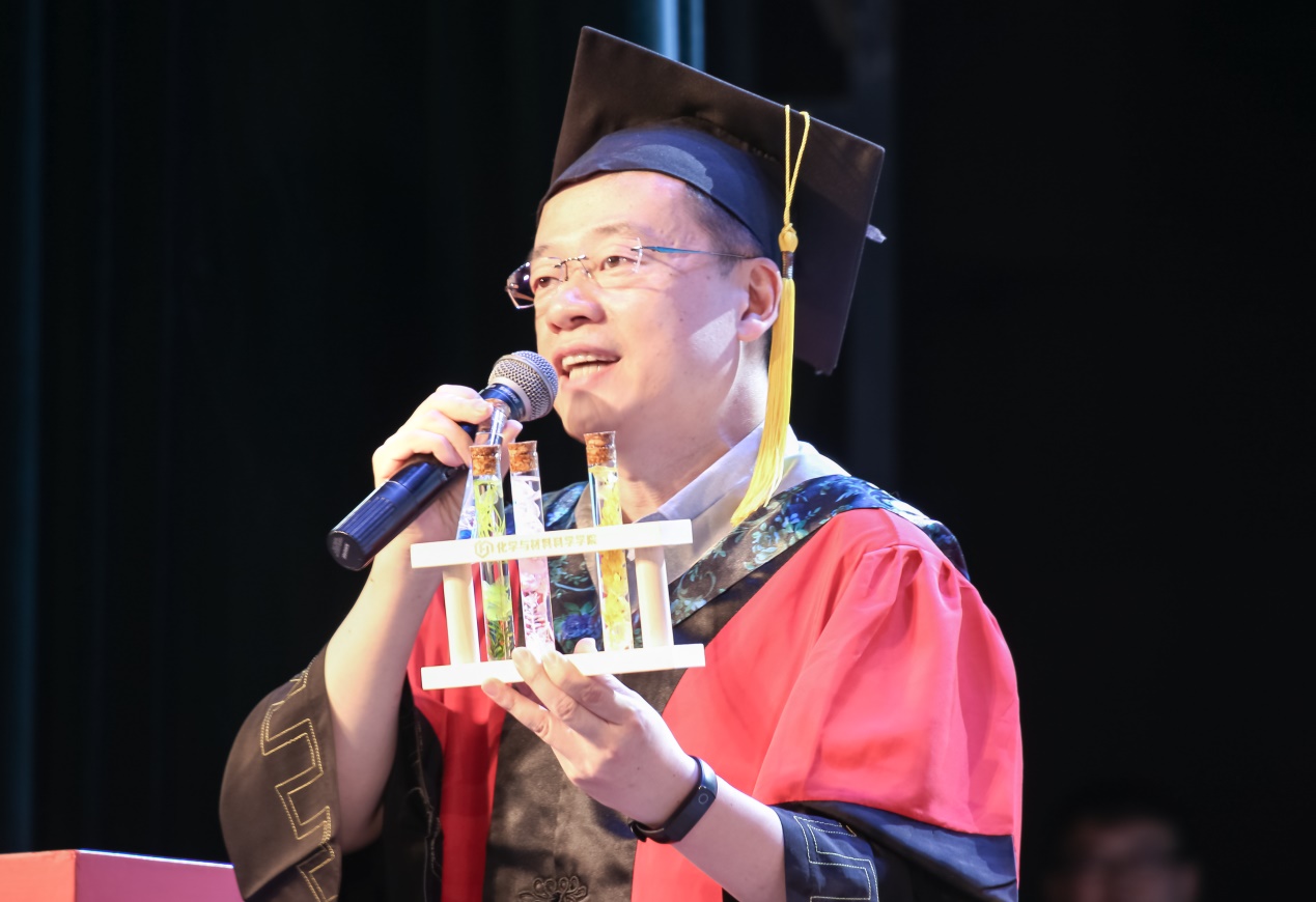院长杨仕平在致辞中从“初心少年遇见此去经年”、“青春华年遇见建党百年”“启程之年遇见开局之年”三个方面展开,指出毕业既是人生新起点的整装待发,更是时代号角下的豪迈出征,希望同学们能肩负祖国厚望,不负时代重托。他将“钙”“铁”“锌”“硒”等化学元素赠予化材学子,希望同学们坚定理想信念,坚持终身学习,勉励同学们心怀敬畏、肩负责任、学会感恩,祝福同学们收获幸福快乐的人生。