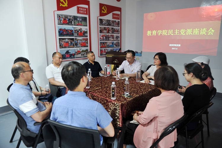 随后,老师们在影视基地党员活动室召开了教育学院民主党派成员座谈会。一直来,学院各民主党派教师始终坚持与中国共产党同心同向,为学院建设和发展作出了积极贡献。座谈会上,民主党派老师和无党派人士畅谈了参加红色寻访活动的体会,并围绕学院科研、教学、人才培养、管理等方面建言献策。老师们畅所欲言,就学院学科布局与发展、青年教师队伍建设等问题提出了想法。