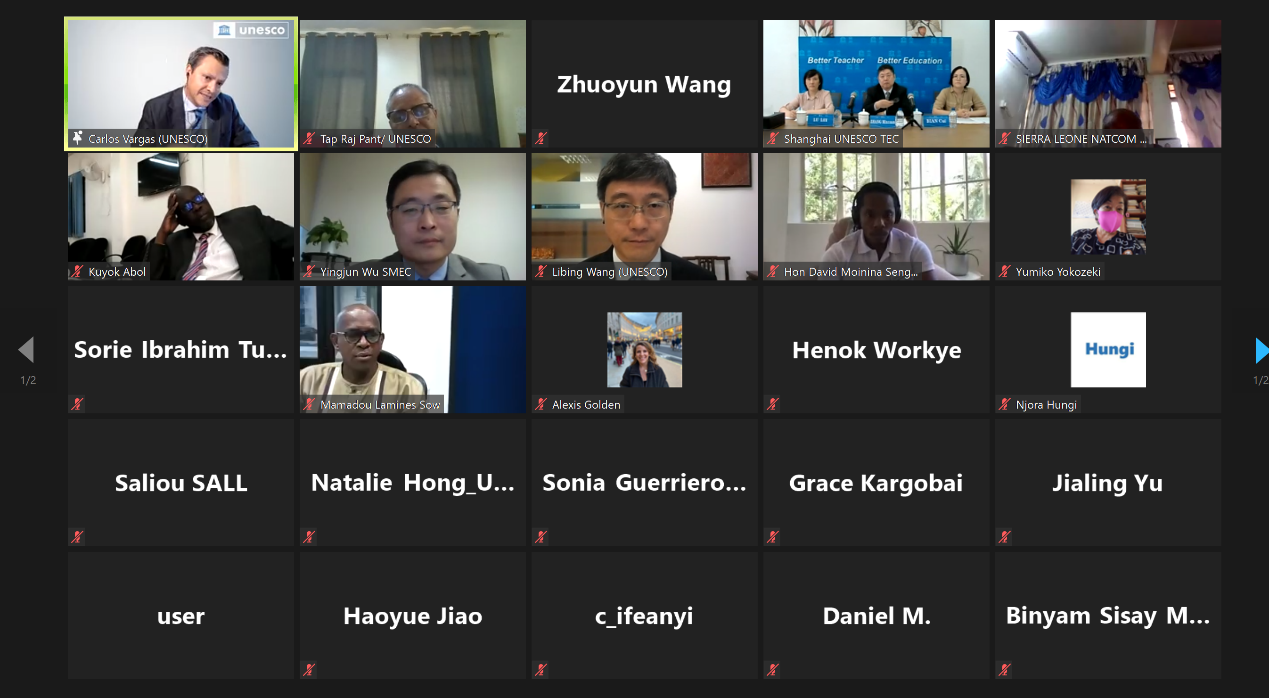 6月22日晚,上海市教委、联合国教科文组织(UNESCO)、联合国教科文组织非洲能力建设国际研究所(UNESCO IICBA)、联合国教科文组织亚太局(以下简称“UNESCO亚太局”)、联合国教科文组织教师教育中心(UNESCO TEC)和非洲参与国代表出席了上海信托基金项目非洲地区启动会议。