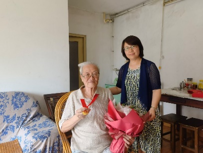 张春丽代表学院为出席会议的老党员颁发纪念章,来自各教工党支部的青年党员为老同志们献上鲜花和致以崇高敬意。