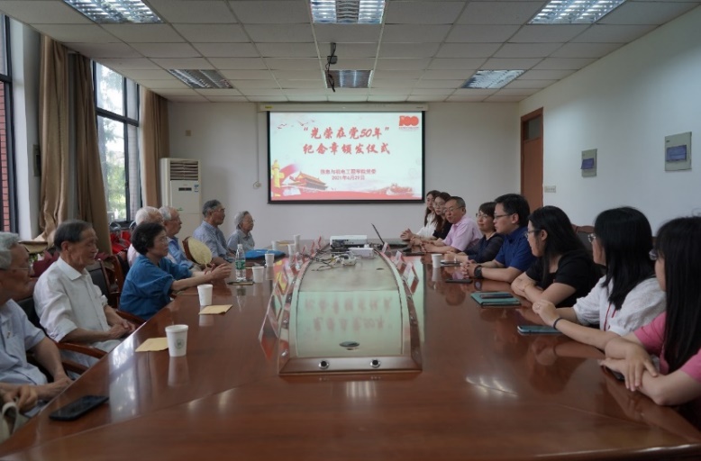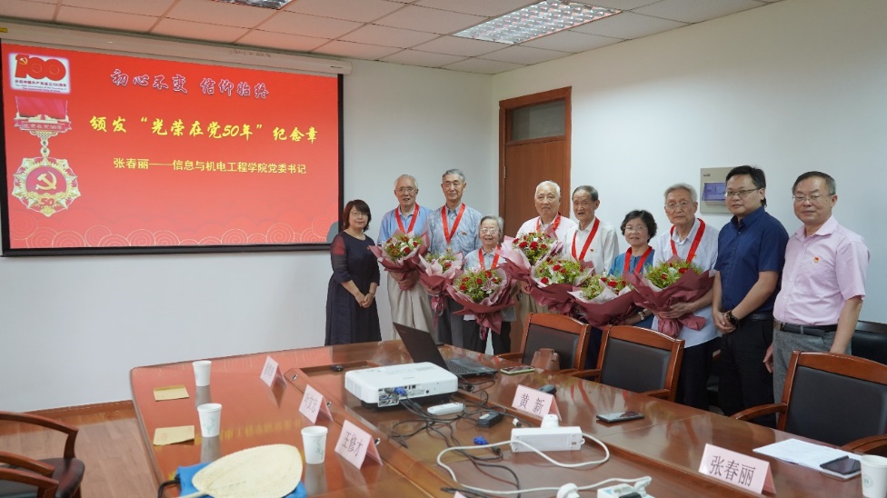 为庆祝中国共产党成立100周年,6月29日上午,信息与机电工程学院在徐汇校区二教414举行“光荣在党50年”纪念章颁发仪式。院党委书记张春丽、院长张波、院党委副书记黄新以及青年教师党员代表出席。会议由黄新主持。