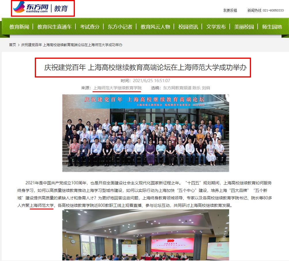 标题:庆祝建党百年 上海高校继续教育高端论坛在上海师范大学成功举办