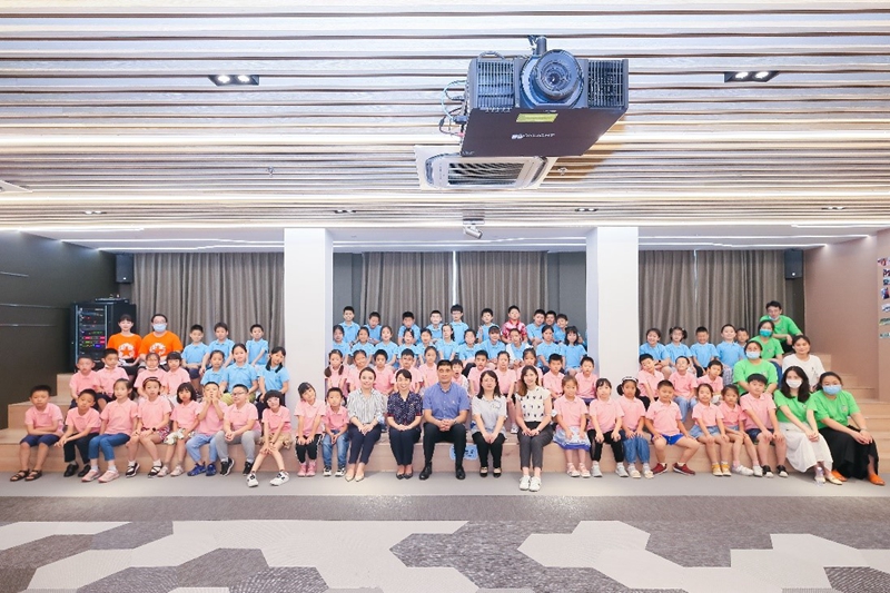 漕河泾街道爱心暑托班校长之一的韩永生作办班介绍。在学院党委的重视下,学院团委的具体指导下,本次暑托班课程紧扣建党百年主题,着力打造红色课程体系,联动学院特色课程资源,大学生志愿者开发了《党史故事》《故里中国》《学子讲精神谱系》《学唱红色歌曲》《红色影片/动画欣赏》等十余门课程。小学员们通过听、讲、唱、演等多种形式了解中国共产党党史,厚植红色基因。