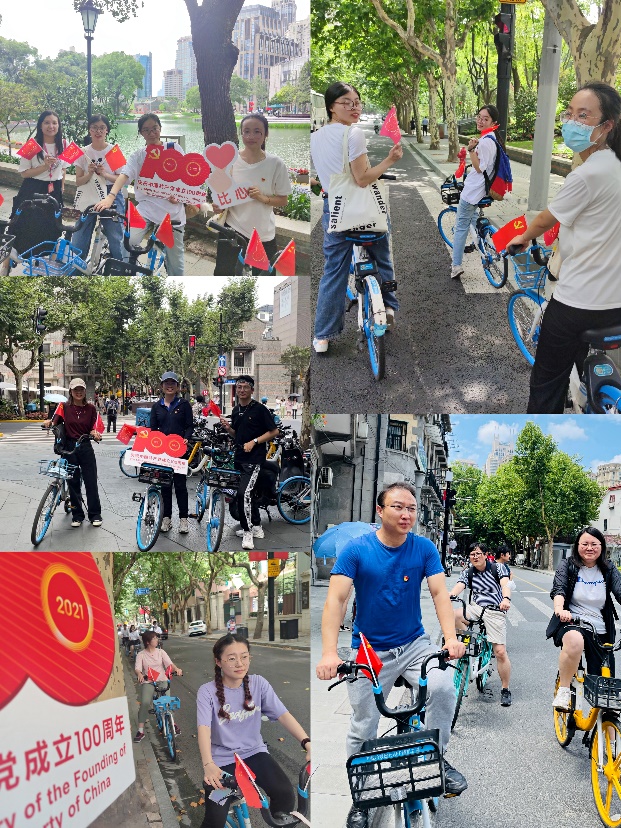 为庆祝中国共产党成立一百周年,深入开展党史学习教育,了解百年党史中的上海故事,7月1日当天下午,人文学院教工第四党支部新一届支委和学院2018级本科学生党支部联合开展“铭记来时路,奋进新征程”骑行党课。在骑行中打卡上海红色地标——中共一大会址、又新印刷所旧址、韬奋纪念馆、周公馆和马克思恩格斯雕像广场,重走先辈们的奋斗之路,感悟新时代党员的责任与使命。