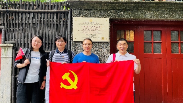 骑行第二站是又新印刷所旧址。骑行第一小分队与第二小分队在此会合,寓意着党的队伍不断扩大,党的力量不断增强。学生党员李汝奕向师生党员介绍了又新印刷所旧址的历史,第一本《共产党宣言》中文全译本在这里诞生,当时内外交困,共产主义思潮风起云涌。通过本次党课,师生党员们感悟了仁人志士勇于变革、坚持真理、坚守理想,不怕牺牲和英勇斗争的伟大精神。