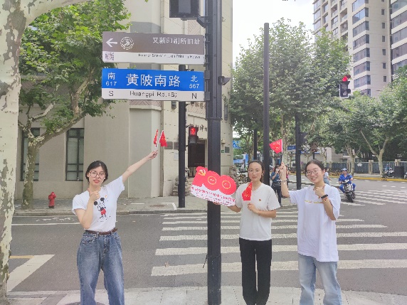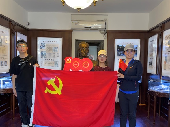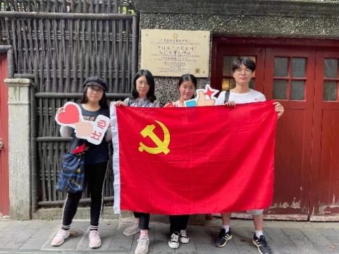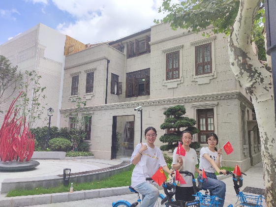 7月1日当天,中共一大会址纪念馆门前人声鼎沸,似火骄阳照耀在四通八达的道路上,这里是骑行的第一站。师生党员骑行第一小分队从这里出发,踏上自行车,沿着革命前辈的足迹去探寻那段峥嵘岁月。小分队绕着纪念馆骑行一圈,全方位环顾纪念馆的宏伟肃穆,其后会合在纪念馆的小花园前,师生共同追忆中共一大召开的坎坷历程。教师党员陈大为教授讲到:“百年来,无数英雄儿女捐躯洒热血,才铸就了如今的辉煌盛世。在这建党百年的重要时刻,我们要牢记为人民谋幸福、为民族谋复兴的时代使命,这也是我辈党员开启新一场‘长征’的起点。”学生党员崔禾雨分享道:“中共一大的顺利召开,正式向世界宣告了中国共产党的成立,这里是我们党梦想启航的地方,是党的根脉和精神家园。”