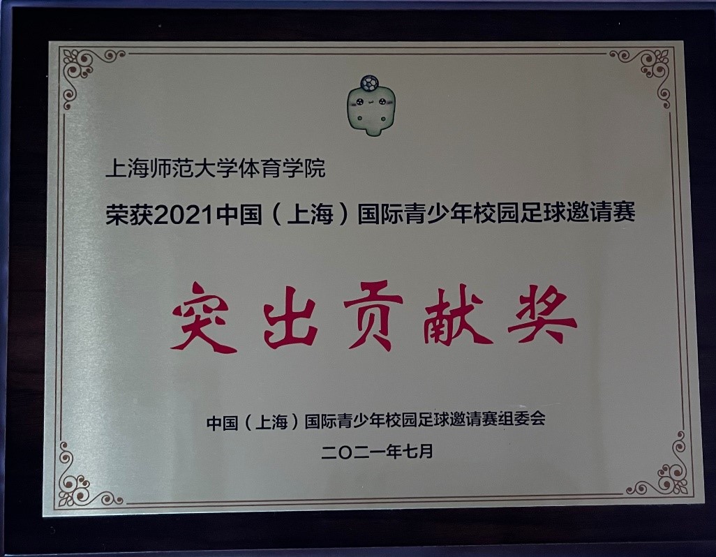 7月7日晚,在上海市奉贤区体育中心,上海申花青年队和上海海港足球俱乐部U17队经过激烈鏖战,上海申花青年队以3:0获得2021中国(上海)国际青少年校园足球邀请赛冠军。大赛组委会对我校体育学院的志愿者工作给予高度评价和肯定,志愿者们表现突出,在各项服务组织中发挥了不可或缺的作用,体育学院被授予2021中国(上海)国际青少年足球邀请赛突出贡献奖。