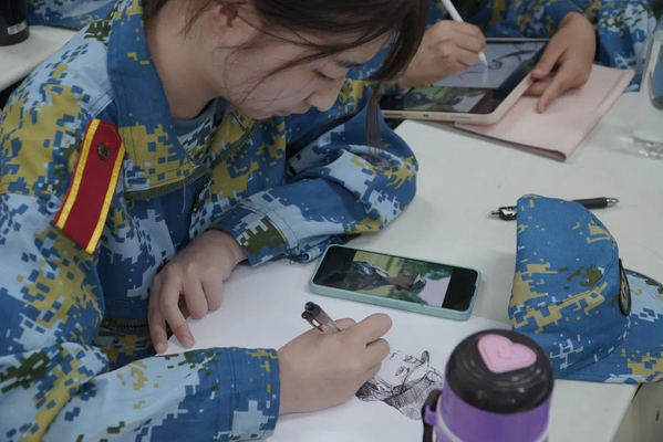 “东风吹,战鼓擂,整理内务谁怕谁!八连我们来应战!”“十六连,有绝技!叠被子,数第一!比速度、比整齐,上下左右都敢比!”在训练场外,强有力的口号响彻校园。各连队借助网络,通过B站、抖音、微信公众号等平台,以“下战书”的形式对内务整理、军容军纪、队列练习等训练内容进行接龙PK,展示连队风貌,凝聚团队力量。“这种接龙形式的连队活动很有意思,让我有置身军营的感觉,不仅激发起自身的胜负欲,比拼之后更是想把原本做不好的事情做到更好,把原本能做好的事做到最好。”2020级表演专业的参训学员黄钰洋说。