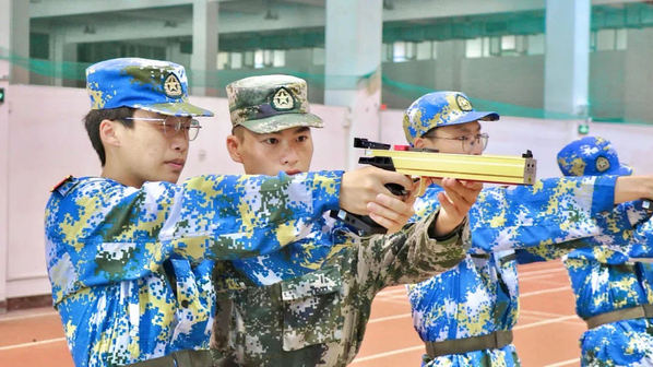 手持仿真枪,身着迷彩服”,这样在电视中才能看到的场景出现在上海师范大学的训练场上。教官向学生强调训练枪支的使用要点并进行操作演示,使学生对于射击训练有大致的了解。伴随着“砰砰砰——”的枪声响起,学生在教官的指令下统一扣动扳机进行射击,切身体会训练要领。