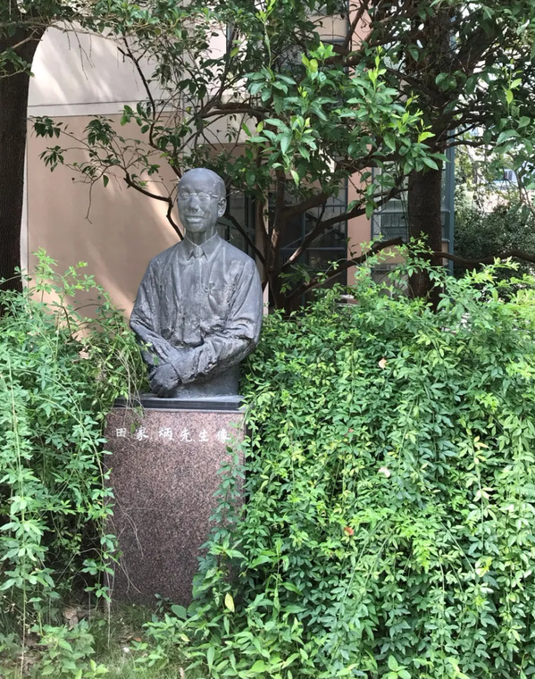 掩映在上海师大校园绿树丛中的瞿广慈作品《田家炳先生像》 陆建非摄于8月21日午后