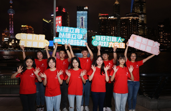 来自东华大学、上海师范大学、上海海洋大学、华东师范大学第二附属中学、上海市杨浦职业技术学校、上海市黄浦区卢湾一中心小学等大中小学校的40余名师生、家长代表来到外滩,以集体喊话送祝福、拍摄创意照片等方式感念师恩、礼敬教师。上海师范大学本科师范生、研究生支教团代表编排手势舞《听我说谢谢你》表达对师长的祝福,以青春之我担师道之责;华东师范大学第二附属中学学生代表演绎外滩街舞快闪,以青春活力致敬恩师。活动吸引了外滩平台上的游客们纷纷驻足观看,并以此为背景为老师录制祝福视频。