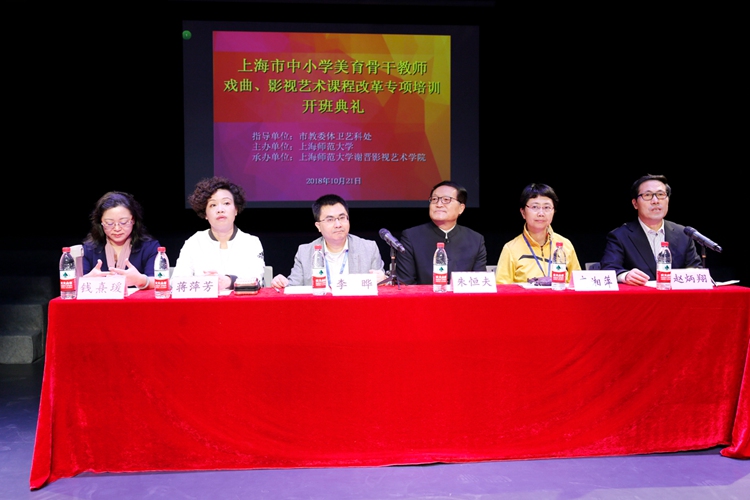 10月21日上午,由市教委体卫艺科处指导,我校主办、谢晋影视学院承办的上海市中小学美育骨干教师戏曲、影视艺术课程改革专项培训开班典礼在我校艺苑楼黑匣子小剧场举行。我校副校长李晔、市教委体卫艺科处副调研员蒋萍芳、市教委教研室艺术教研员钱熹瑗、我校教务处处长高湘萍、谢晋影视学院院长赵炳翔、学术委员会主任朱恒夫以及全市113位中小学美育骨干教师们一同出席了此次开班典礼。
