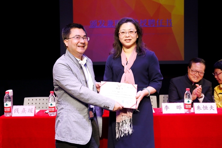 开班典礼上,李晔为钱熹瑗老师颁发了我校兼职副教授聘任书,感谢钱熹瑗老师为我校中小学美育教育工作方面的支持与指导。