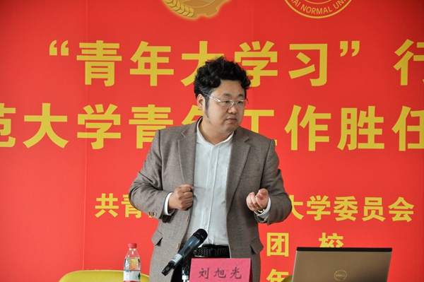 上海大学教授、博导、上海市曙光学者刘旭光主讲“青年大学习”专题学习讲座。刘旭光教授结合习近平总书记在全国教育大会上讲话,以“新时代青年如何审美”为主题,从加强和改进青年工作中的美育教育,坚持以美育人、以文化人,提高学生审美和人文素养三个方面进行了深入浅出的解读。