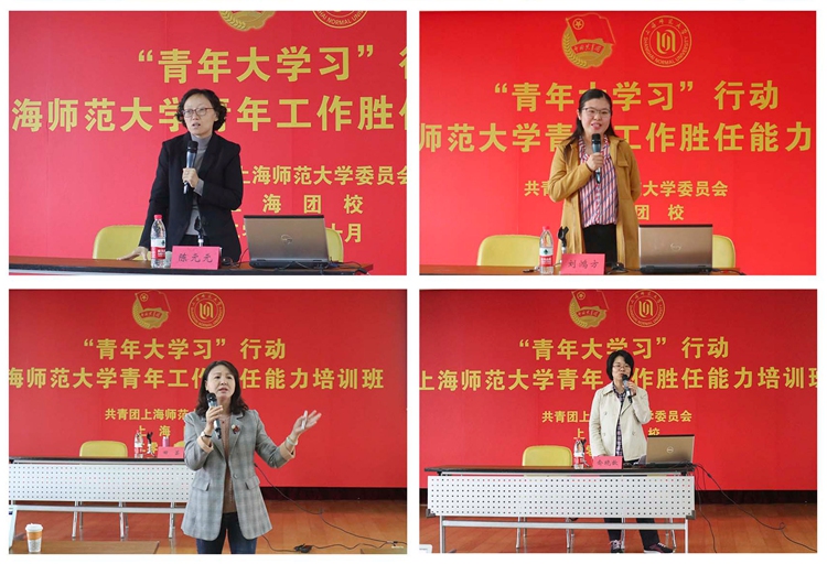 上海团校陈元元、田芸、刘鸿方、俞晓歆分别以“转型期中国社会的青少年”“团队分工与执行”“青年工作中的有效沟通”“青年积极心理品质塑造”为主题进行授课,帮助我校专兼职团干部、学生骨干掌握新时代青年群众工作方法,提高团的岗位履职能力。在培训班上,专家和讲师们从理论知识和专业素养等层面与学员进行交流与互动,现场氛围活跃,讨论热烈。