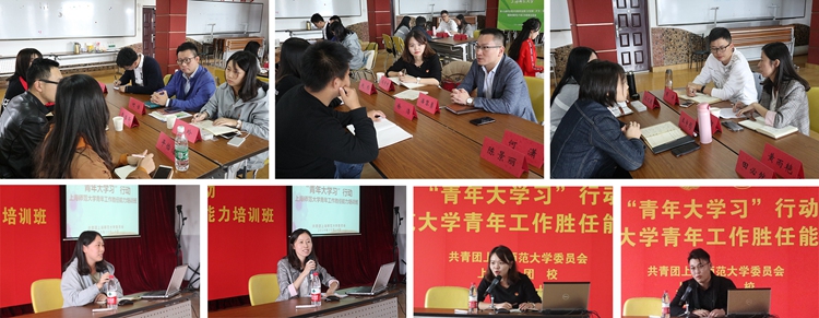 为深入贯彻落实团中央“青年大学习”行动,10月18日至19日,2018年“青年大学习”上海师范大学青年工作胜任能力培训班在徐汇校区香樟苑多功能厅顺利举行。本次培训班是校团委近些年在团干部培训方面首次与上海团校进行的合作新模式。校院两级专兼职团干部,研究生团总支书记,部分学生骨干参加此次培训班。