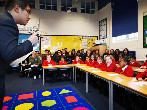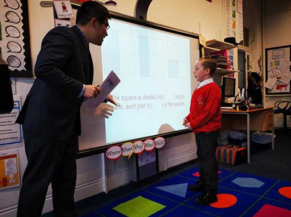 海教师教英国小学生几何。徐瑞哲 摄