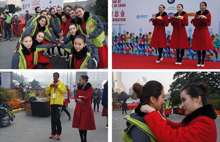 除了传统的男女半程、全程颁奖礼仪服务之外,由于本届马拉松赛相比往年更专注城市魅力展现,赛道贯穿申城城市地标,其中途径怀旧气氛浓郁的复兴公园、万国建筑博览美誉的外滩、时尚动感的淮海路、风景旖旎的徐汇滨江等景点,在赛事终点服务的我校礼仪志愿者则成为了赛事一道亮丽的风景线,优雅的仪态、美丽的笑容作为上海城市风采展现的重要部分赢得了赛事赞助商、媒体、选手的争相合影。