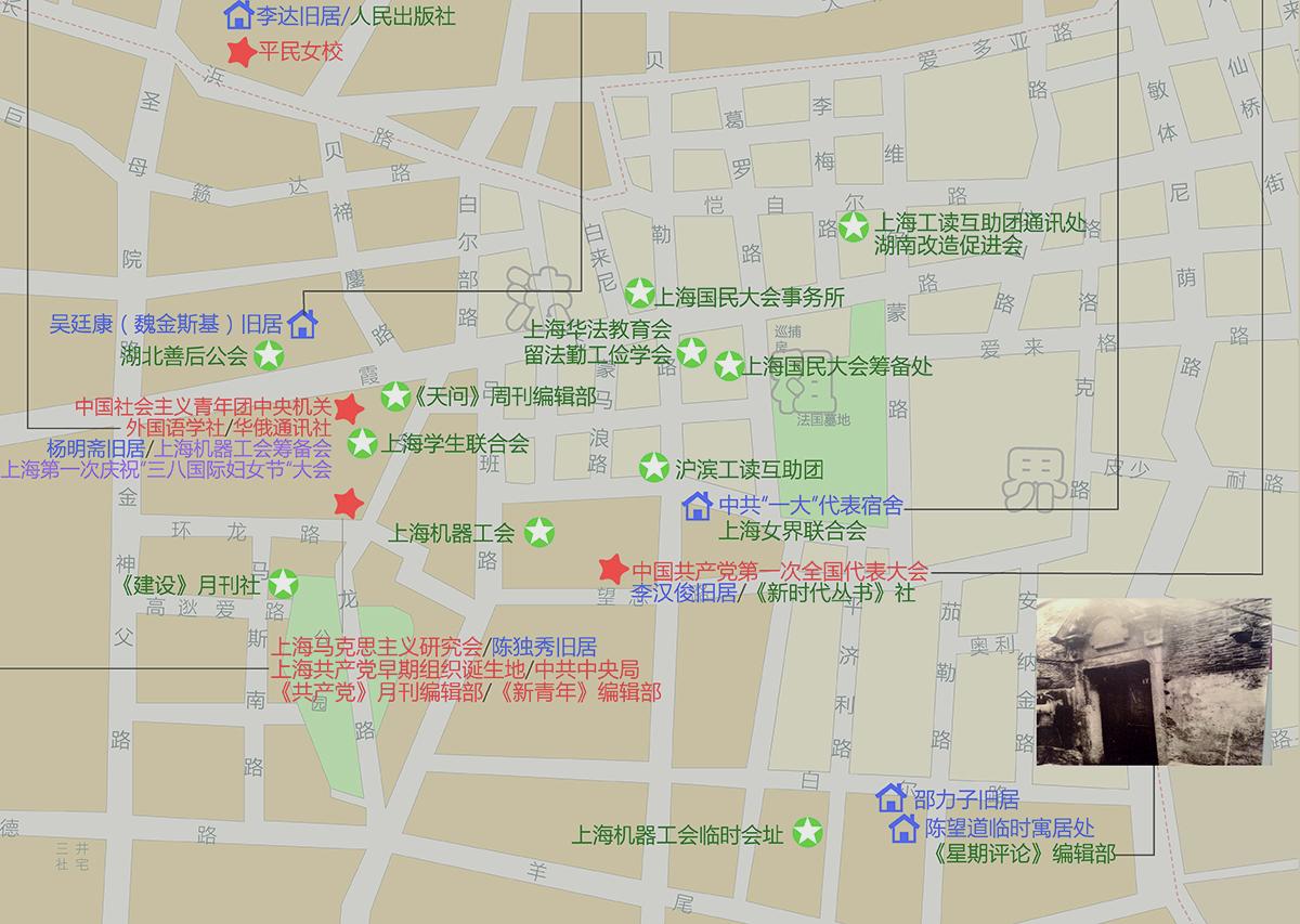 在研究层面上,这份地图从微观角度解释了中共创建过程中的空间因素。在分布上,汇集申城的中共建党过程中各类组织机构和事件发生地,从中国共产党早期组织诞生的老渔阳里、中共“一大”上海会议会址到“一大”代表住宿的博文女校等,都位于法租界中区。专家认为,20世纪20年代初的上海城市,特别是新规划建成的法租界中区,其街区生成、建筑形式和权力结构,在中国共产党诞生的历史必然性之外也提供了一些便利条件。