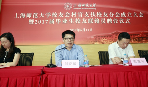 6月11日,上海师范大学校友会村官支扶校友分会成立大会暨2017届毕业生校友联络员聘任仪式在徐汇校区会议中心二号报告厅举行。副校长、校友会副会长刘晓敏出席并讲话。学工部及校友会相关领导、村官支扶校友分会理事代表、2017届毕业生校友联络员代表参加本次会议。会议由校学生职业发展与就业指导中心主任韩刚主持。