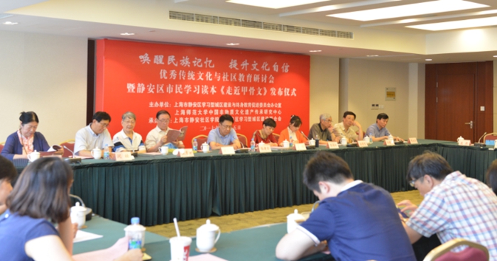 校非遗传承研究中心主任陆建非教授以“社区和学校:弘扬传统文化的重要阵地”为题作了讲话。他从上海要成为“全球都市”的高度,以非物质文化遗产传承为视角阐释了人文之城的深远意义,描述了优秀传统文化走进社区、走进校园的蓝图。陆建非指出,自上世纪末至今,“文化自觉”的概念在中国学界从出现到流行、“非物质文化遗产”的概念从联合国提出到中国热烈响应,人们注意到这两个重大文化事件的历史相遇,学界倾心研究二者内在的关联,认为非遗传承和保护是完成中国文化自觉、文化自信的一个有效路径,现在已经到该出手的历史拐点了。静安区推出市民读本系列,在这方面做了有效的探索,值得赞赏。
