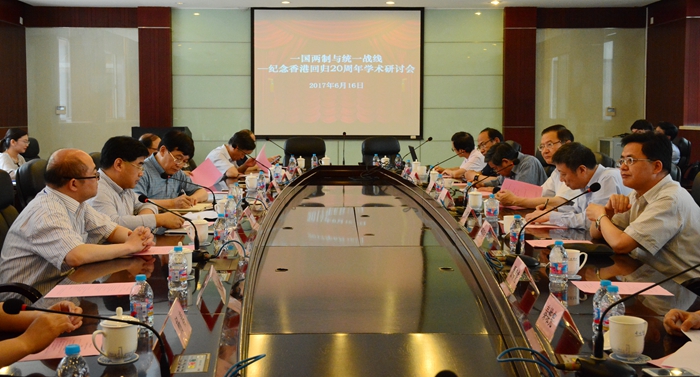 为研究总结“一国两制”伟大构想实行以来我国统一战线工作的新理论、新经验,2017年6月16日,“‘一国两制’与统一战线——纪念香港回归20周年”学术研讨会我校召开。会议由上海科学社会主义学会、上海市统一战线理论研究会、上海市人民政协理论研究会、上海师范大学马克思主义学院、上海师范大学比较政党研究中心联合举办。近40位专家学者以及《解放日报》《探索与争鸣》《社会科学报》《党史与党建》等媒体记者参加了学术研讨。与会者从科学社会主义、哲学、法学、政治学、社会学等多学科多视角探讨了“一国两制”的理论内涵、“一国两制”的实践路径、“统战工作”推行过程中产生的问题及解决策略等问题。